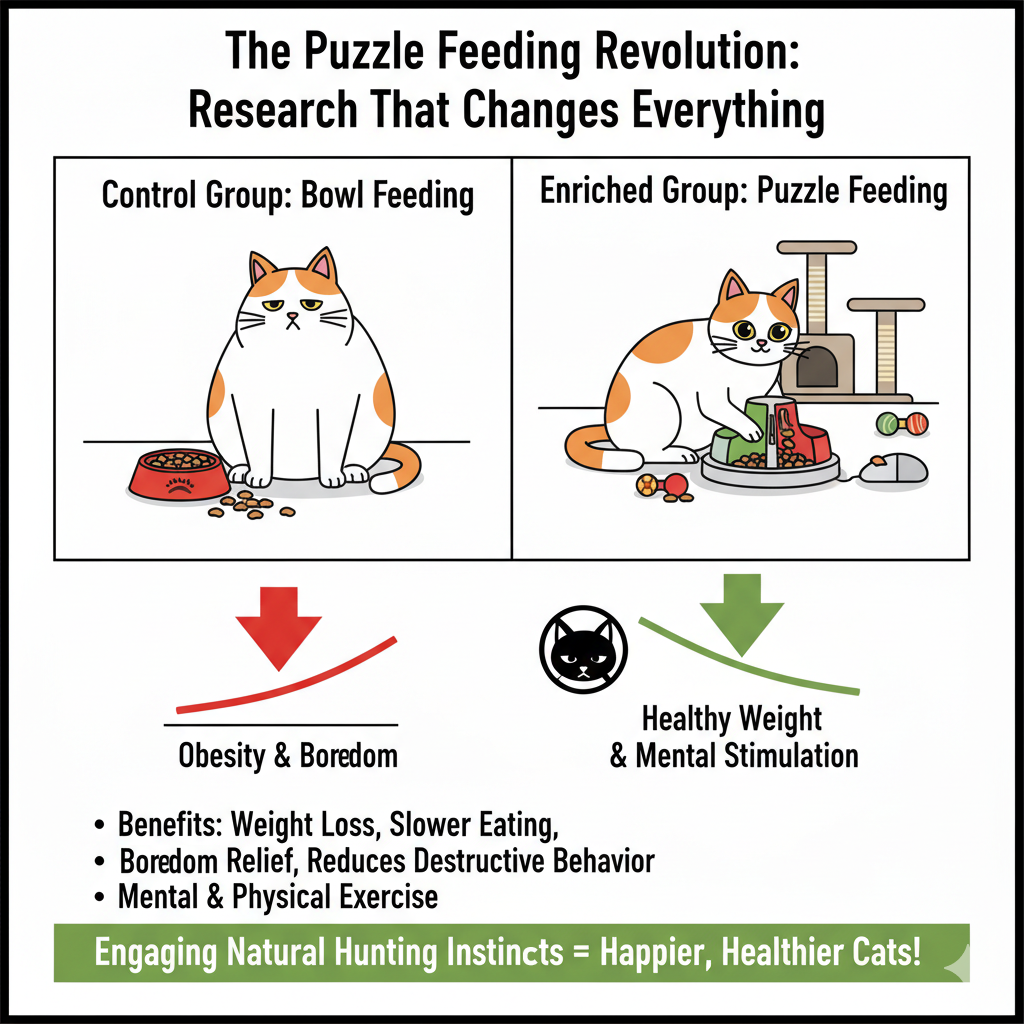 Extensive clinical research has revealed the remarkable benefits of cognitive enrichment through puzzle feeding systems. Studies show that cats using food puzzles experience: