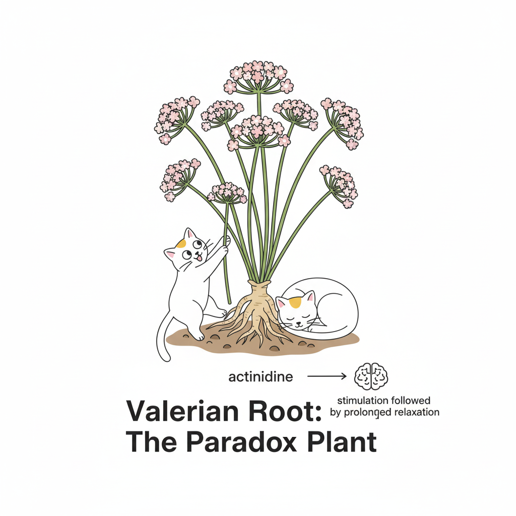 Here's where things get interesting. Valerian initially provides stimulation through the active compound actinidine, but unlike other stimulating herbs, it typically produces prolonged relaxation after the excitement phase. Scientific studies indicate valerian appeals to a broader percentage of cats compared to catnip, making it valuable for cats that don't respond to traditional feline attractants.
